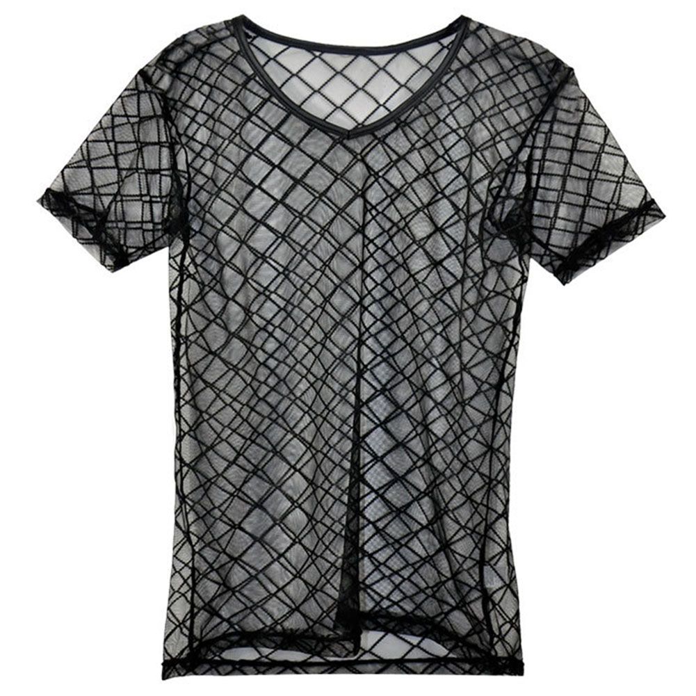 Singlet Plaid Transparent Mesh V Neck T transparent t shirt online