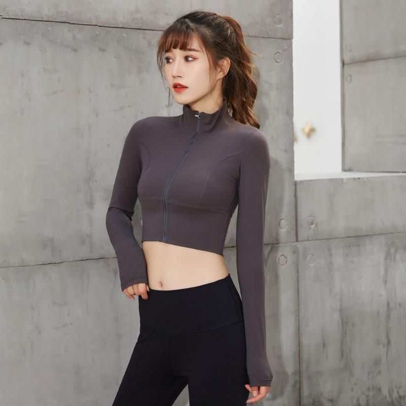 Women Tight Yoga Gym Jacket Long Sleeve tight crop top workout
